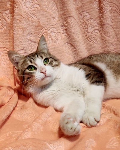 Самый ласковый котик в мире ищет дом! Лукасу не больше 1 года, как он оказался брошенным на улице не известно, но в бою за жизнь, он выиграл и сохранил своё трогательное сердечко! Вид человека приводит его в восторг, сразу начинает рассказывать о своих кошачьих делах и «топтать» лапками. Мурчалка запускается автоматически и выключается только во время сна и приема пищи. Лоточек и когтеточка освоены, полностью здоров и привит. Имеет паспорт, где не хватает только имени его будущего друга и хозяина на всю жизнь! Лукас очень ждёт своего человека, приезжайте знакомиться и влюбляться в эти глаза!