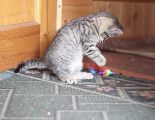 Тигрёнок в миниатюре. Девочка. Возраст 1,5 месяца. Чистенькая, здоровая. Ласковая, ручная.