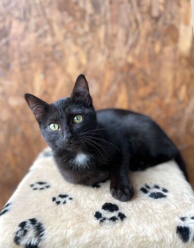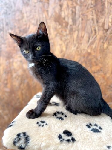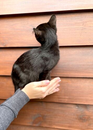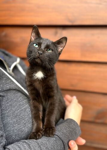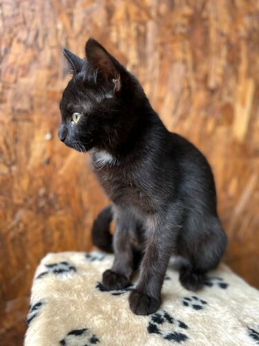 Зовут Ланга. Возраст четыре месяца. Здорова, обработана от внешних и внутренних паразитов. Ланга - гибкая, грациозная, лоснящаяся красавица. Окрас черный с шоколадным отливом, шерсть шелковистая, глаза зеленые, на грудке белый бантик. По характеру Ланга уравновешенная, наблюдательная, ориентирована на общение с человеком. Обожает сидеть на ручках, подтверждая это громким урчанием. К лотку приучена. Предпочитает влажный корм, но ест и сухой.