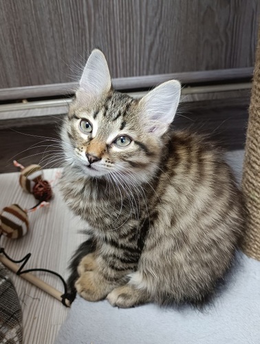Марс, мальчик, возраст 11 недель, здоров, обработан от паразитов, пушистый. Озорной, активный и мягонький котенок, хорошо ладит с животными и детьми. Любит спать в ногах и обниматься с сестрой. Приучен к лотку, ест сухой и влажный корм. Тел. +7 925 309 96 77 Маргарита, метро Волоколамская (МЦД Опалиха)