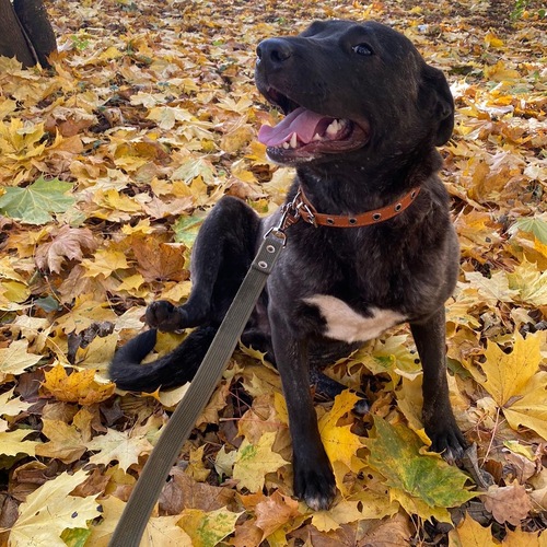 Метис лабрадора со стаффом очень красивого тигрового окраса с белыми тапочками. Возраст год-полтора. Проглистована, привита. Девочка-потеряшка с неопределённым прошлым: на шее шрам, толщиной в палец, как будто от удавки или веревки. Скорее всего содержалась у неблагоразумных хозяев, так как наблюдается тревожное поведение. На данный момент перестала бояться рук, ошейника, подъезда и лифтов. В первые дни в подъезд не шла совсем, носили на руках на улицу. Сейчас ходит сама. Арье необходим повышенный уровень заботы и ласки. В том числе в процессе дрессировки. Особое внимание стоит уделять её адаптации: в целом она хорошо ладит с другими собаками и детьми, если они не шумные и не гиперактивные в отношении неё. В других случаях может испугаться, что повлечёт угнетенное состояние и повышение тревоги. При испуге пытается убежать к себе на привычное место (где ночует). Предпочтительно заселить её в частный дом, чтобы было место и время ей бегать, играть. Отдаю обязательно с Приветами из дома. По всем вопросам (во всех мессенджерах): +79811977467