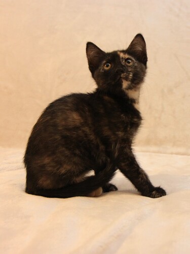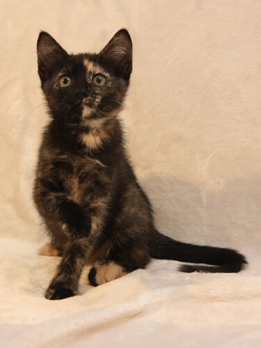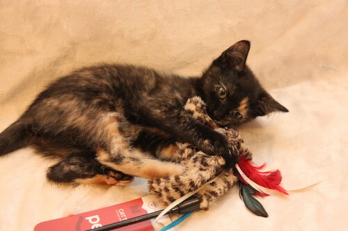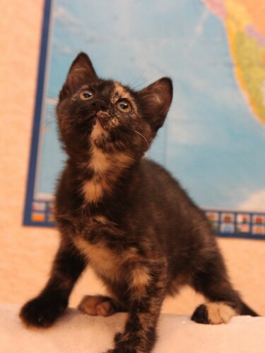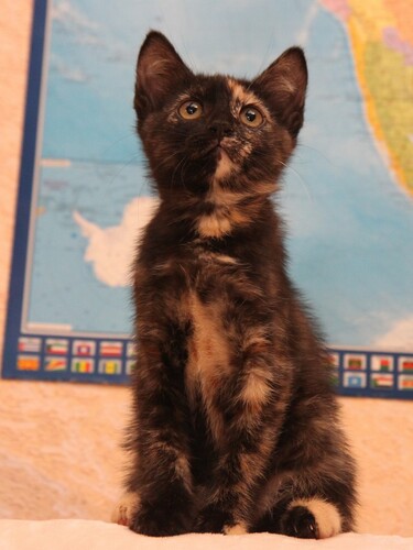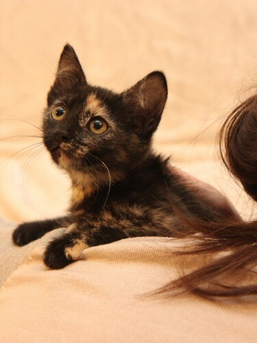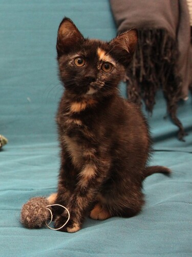 Милая скромная девочка, очень аккуратная и внимательная. Умеет носить игрушки в зубах, активно их защищает и забавно рычит :) В характере видна склонность к осторожности, наблюдательности и преданности. Она вырастет доброй кошкой, но не будет кидаться всем на встречу, а будет привязана к хозяину, сохранять домашний уют и дарить тепло. Как и все котята активно играет, бегает и прыгает. К лотку приучена.