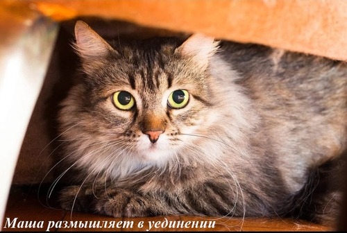 Кошка, которая выиграла.... жизнь. Её уже не должно было быть на свете. У каждого своя судьба, у Машеньки она была предопределена, как только ее бывшие хозяева решили, что кошка им больше не нужна - они в новой квартире вполне могут обойтись без старых вещей и без пушистой сибирячки. Кошка оказалась зимой на улице далекого провинциального города без навыка выживания на улице, с раной предательства в сердце и надеждой, что не все люди жестоки. Маша 2 года выживала, прибившись к Водоканалу, где ее кормила добрая женщина во время своего дежурства 3 раза в неделю, и также 3 раза в неделю ее пускали погреться зимой в теплое помещение дежурного по Водоканалу. Остальное время маленький пушистый памятник человеческой жестокости сидел у входа в дежурку и с достоинством, и без подлизывания к другим, ждал свою благодетельницу. Вот так Маша заняла кусочек сердца доброй женщины, у которой дома в однушке уже жили 10 кошек. Я предлагаю Вам лапу и сердце самой умной, самой благородной, самой стойкой киски на свете. Поверьте, благородство этой сибирской дворянки, ее мудрость, проницательность, развитый интеллект и бесконечная вера в человека сделают вашу жизнь.... другой. Ощущение причастности к изменению судьбы киски, которой ничего хорошего в жизни не светило, изменит и ваше ощущение себя. Тем более, что Машенька чистоплотна, пользуется лотком на отлично, красива, стерильна, обследована у врача, имеет ветпаспорт, 3 года примерно по возрасту. Звоните, приходите знакомиться, возможно, именно вы тот самый родной и долгожданный ее Человек! Помните, лучше один раз увидеть, чем сто раз прочитать. Задать вопросы и договориться о встрече с Машенькой Вы можете, написав нам письмо на электронную почту.