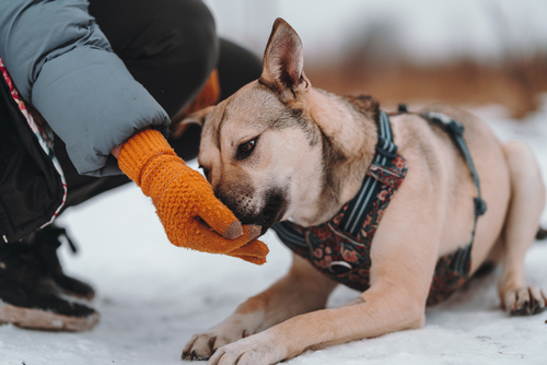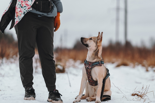 Средняя собака с короткой шерстью и стоящими ушками