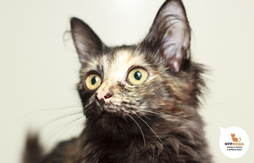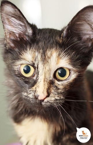 Наверное, мне повезло чуть больше, чем обычно везёт тем котятам, которые рождаются в подъездах. Обо мне, моих братиках и сестричках заботились местные неравнодушные люди, а сейчас я с нетерпением жду того человека, который оценит мой активный и общительный характер и мой необычный окрас - приглядитесь, я же как будто надела карнавальную маску. Быть может, она обещает мне тёплое праздничное будущее? Хотелось бы верить!