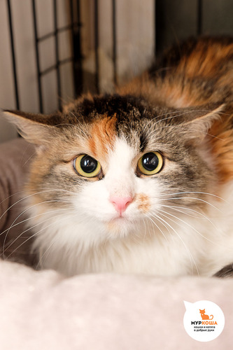 Сарбону нашли в подвале жилого дома, в возрасте 2 месяцев в стрессовом состоянии, что привело к волнению и страху в первое время в приюте. Новая семья не смогла оставить у себя кошку. Возможно, это пушистое облачко ждёт именно вас! Взглянув на её фотографии, можно увидеть, что она очень серьёзная, но это не мешает ей оставаться нарядной и активной.