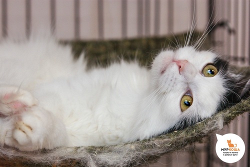 Белоснежная пушистая красавица Ляпуша с уникальным черными ушками была подкинута к дому в Лобне. Ласковая мурлыка пела хозяевам свои детские песенки, но, к сожалению, её, отзывчивую и добрую, не приняли кошки-старожилы. Ляпуша очень юна, её открытый и доверчивый взгляд берет за душу. Ласки в ней на века, а как она ценит внимание и заботу, не передать словами. А еще Ляпуша сама грация, приходите немедленно и будете тут же очарованы!