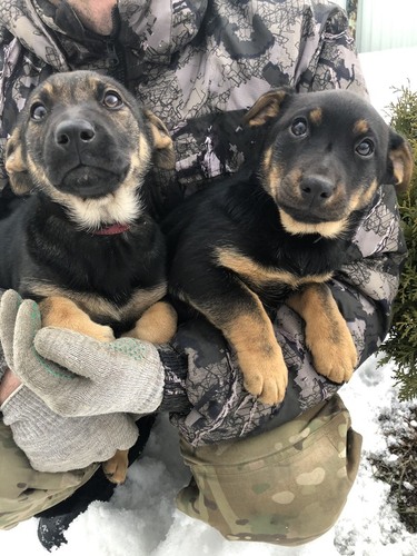 Щенки — небольшие метисы овчарки в дар. Ищем дом и заботливую семью 2 девчонкам — метисам овчарки. Родились 01.01.21 года. Здоровы, обработаны от паразитов, привиты, есть ветпаспорт. Вырастут среднего размера, по колено. Санта (зонарного окраса, красный ошейник) малышка смелая, игривая, любознательная, очень активная, есть задатки охранника. Милка (чепрачная) спокойная, нежная стесняшка, любит ласку, пригреться на ручках и поспать) — будет отличным компаньоном и другом. В дар. 89017227904 Ирина