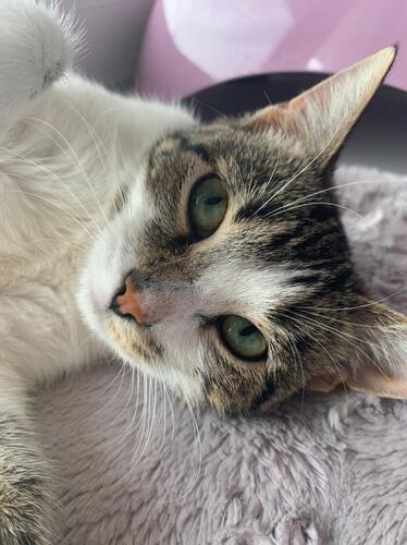 Флай, совсем молоденькая, родилась примерно 01.06.2020, как и многих подкинули на промзону, откуда ее вместе с котятами забрали на передержку. Девочка не успела подорвать свое здоровье полууличной жизнью, т.к. ей позволялось заходить в бытовку к рабочим, но и ручной тоже не была. Сейчас Флай абсолютно счастливая кошечка, и ориентирована на человека. Отъелась, похорошела, шерстка лоснится, глазки блестят. Конечно, в силу своего возраста, она любит играть, скакать, наводить бардак в своем небольшом приданном, просто быть подростком, а не взрослой кошкой. А еще она не откажется от ласк и заботы, она научилась верить человеку, а в ответ дарит свою заботу. Флай, за время её «домашней» жизни освоила лоток на 5+, маникюр своих коготков проводит на когтедралке, обработана от паразитов, кушает и влажный и сухой корм, стерилизована, здорова и активна, дружит с кошками, к собакам терпима. Девочка находится на передержке в зоогостинице, к ней в любой день можно приехать и познакомиться вживую! Куратор Наталья телефон 8-905-705-04-10