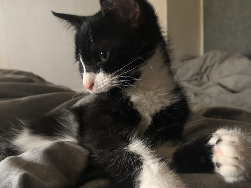 Отдам чёрно-белого мальчика Моцарта в добрые руки (имя можно поменять, не привык пока)). 3 месяца, приучен к лотку. Очень любит играть и спать на руках. Умный, если что-то нельзя понимает с первого раза. Отдаю потому что старший кот его не принял. Прививок пока не делали, но от паразитов обработан. На улице не бывал, родился у домашней кошечки. По желанию можете забрать когтеточку для котят, Моцарту она нравится. Пишите-звоните)