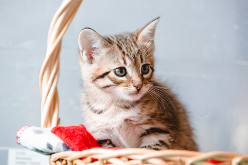 Очень милый игривый котёнок, около 2 мес, мальчик, с тигровым окрасом ищет хозяина. Анализы все сделаны, от паразитов обработан, приучен к лотку и корму.
