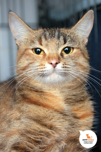 Привет, меня зовут Арника. Я была уличной кошкой, у которой не было ни дома, ни заботливых хозяев. Но добрые люди нашли меня и привезли меня в приют "Муркоша". Теперь я жду здесь своих будущих хозяев. Надеюсь, они придут как можно быстрей. Кстати, я уже говорила, что обожаю детей и буду прекрасным другом для всех членов семьи: и больших, и маленьких? Приходите скорее, я вас очень жду.