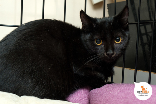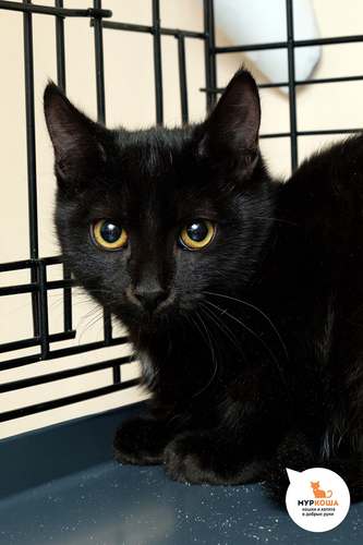 Юный котик Акапулько с любопытством смотрит вокруг и думает: "Мне повезло, что я избежал уличных скитаний и нашел пристанище в "Муркоше". Теперь мне помогут обрести постоянный дом и любящих котородителей. А я торжественно клянусь, что моя блестящая черная шерстка, усы и хвост принесут только удачу и любовь!"