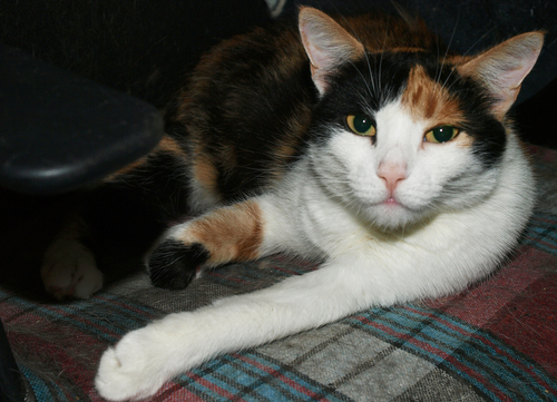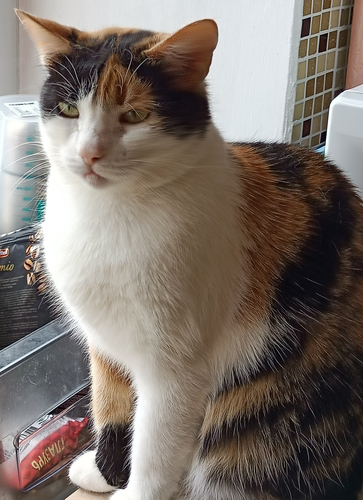 Ищет дом трехцветная короткошерстная кошка по имени Ника, спасенная с улицы. Привита, СТЕРИЛИЗОВАНА! Лоток знает на 5+. . Окрас - классический "черепаховый с белым" (tortie with white). Лучший вариант для нее - быть одной кошкой в квартире (она может ужиться со спокойным, не слишком доминантным котом или кошкой, но вообще других кошек она не очень любит, больше предпочитает общество человека) Познакомиться с кошечкой можно в квартире в городе Мытищи (ближайшие станции метро - Комсомольская, Медведково, ВДНХ). Звоните: 8-903-629-19-6семь, Мария (и пишите в телеграм)