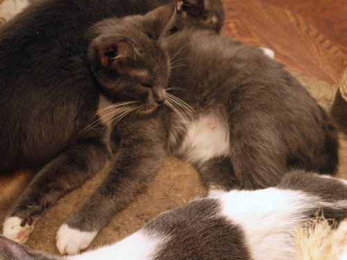 По характеру она довольно спокойная. Любит поспать. Квартиру не громит. Будет хорошим компаньоном для кастрированного котика или стерилизованной кошечки, других животных очень любит, часто спит в обнимку с ними. "Всехняя" мама, любит воспитывать чужих котят. Если чувствует, что кому-то плохо (коту или человеку), сразу придет лечить и успокаивать.